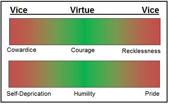 My colleague was only capable of moving between the extremes. He didn't understand that the virtue of modesty, like all virtue, lies in that area of sanity between two vices.